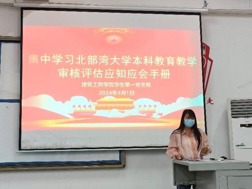 建筑工程学院学生第一党支部集中学习北部湾大学本科教育教学审核评估应知会手册