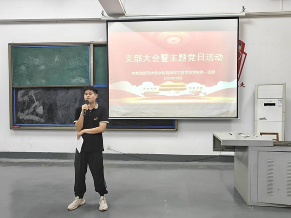 10月29日晚,水利与海岸工程学院学生第一党支部在8B-309教室举行支部大会暨十月主题党日活动。活动由支部书记黄剑锋老师主持,支部全体在校党员及入党积极分子代表出席会议。