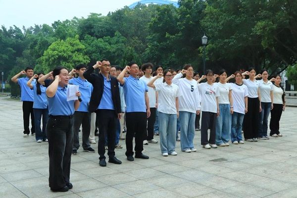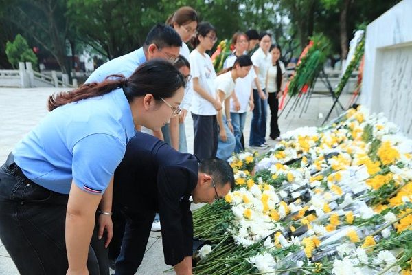 随后,全体人员向革命烈士三鞠躬,并依次走向纪念碑敬献鲜花,用最庄重的仪式,表达对革命先烈的深切缅怀与崇高敬意。敬献鲜花后,全体党员面向党旗,重温入党誓词,铿锵有力的誓言回荡在纪念碑前,表达了全体师生继承革命遗志、牢记初心使命、敢于挺鹰担当的决心和承诺。