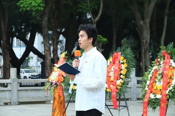 祭扫活动开始,全体人员整齐列队,庄严肃立。全体人员奏唱中华人民共和国国歌,激昂的旋律响彻纪念碑广场。全体人员向革命烈士默哀,以最诚挚的敬意,缅怀为民族解放、人民幸福英勇献身的先烈们,寄托无尽哀思。默哀毕,学生党员代表石志凌结合自身学习与成长经历,分享了自己对革命精神的理解与感悟,表达了新时代青年传承红色血脉、勇毅前行的坚定决心,承诺将以先烈为榜样,勤奋学习、锤炼本领,以实际行动践行“强国有我”的青春誓言。