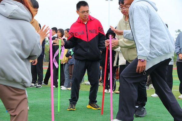 活动伊始,紧张刺激的热身游戏“争当龙头”点燃了同学们游戏的热情,随后,同学们在裁判的组织下,分成10支队伍,开始素质拓展活动游戏。活动过程中,同学们秉承友谊第一,比赛第二的宗旨,互相鼓励、携手共进,充分发挥了团队合作的精神。