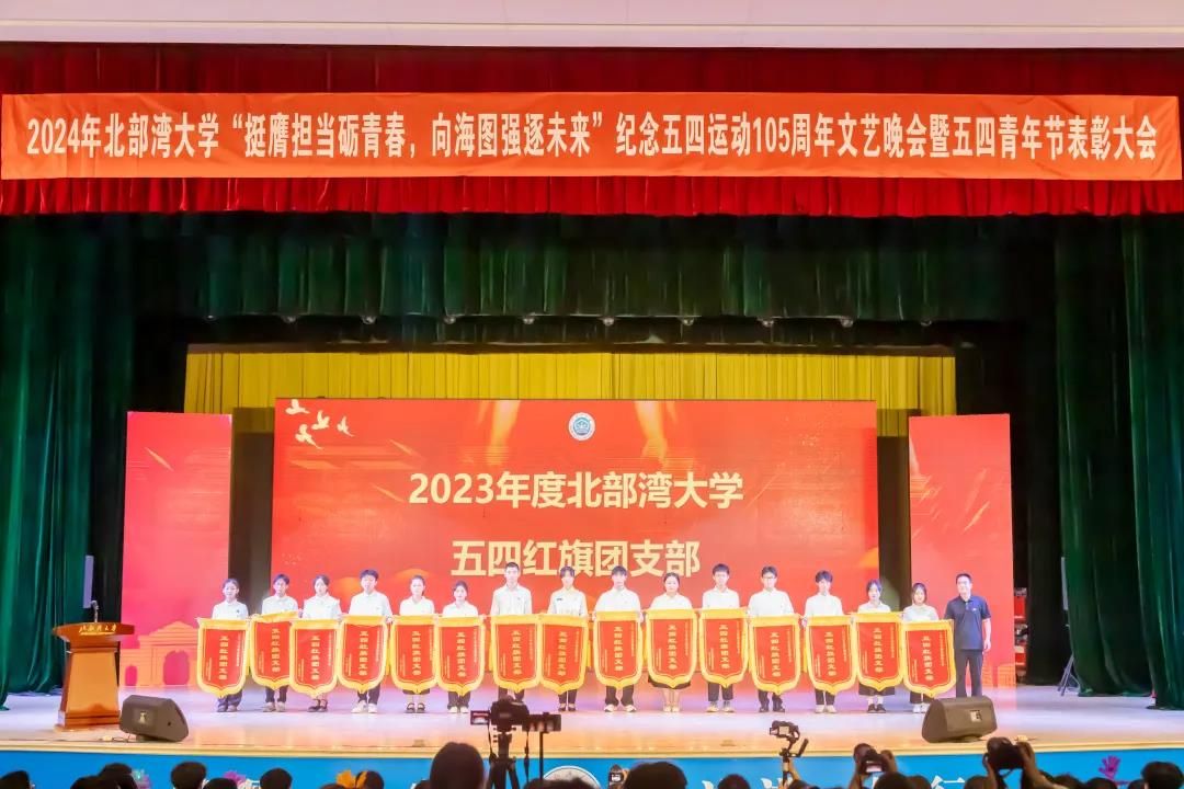 2024年4月28日晚,北部湾大学“挺膺担当砺青春,向海图强逐未来”纪念五四运动105周年文艺晚会暨五四青年节表彰大会在大礼堂举行,我院团委在表彰大会中荣获2023年度“五四红旗团委”荣誉称号。