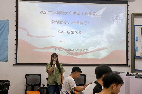 为进一步加大资助政策宣传,贯彻落实资助育人体系,培养学生励志自强、诚信感恩的良好品质,提升学生专业技能和科技素质,为同学们打造一个全方位的成长平台,2024年6月21日晚上,由北部湾大学建筑工程学院主办,北部湾大学结构建模协会承办的“筑梦助学,绘图前行”CAD绘图大赛在8号教学楼B栋401教室成功举办。参加本次大赛的有建筑工程学院辅导员徐艳霞、薛舒敏,专任教师李鸿永以及来自各个学院的参赛选手。