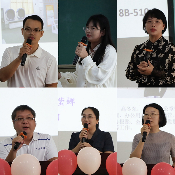 学院党政办、学工办、实验室、教务办、各教研室负责人先后上台介绍本科室基本情况,帮助同学们加深对学院的组织架构和不同科室工作职能的了解,增强同学们对学院的熟悉感和归属感。