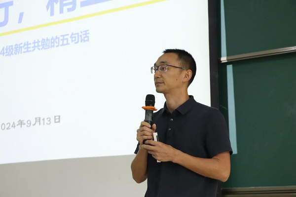 蒋琼明副院长向新生作学校校情、校史、学院院情、教学科研等情况介绍,并向同学们提出五个方面的要求,希望同学们做到:树立专业志向,夯实基础;强化实践能力,激发创新;拓宽知识视野,紧跟时代;加强团队协作,善于沟通;持续自我提升,终身学习。