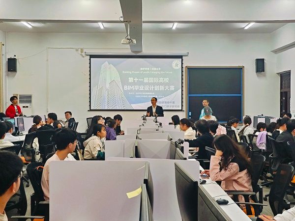 本次比赛以小组赛形式开展,共15支参赛队伍同台竞技,探索建筑信息模型技术的奥妙。比赛现场,建筑工程学院副院长蒋琼明亲临,进行赛前发言,指出BIM技术作为建筑行业数字化转型的关键力量,在当下工程建设领域发挥着不可或缺的作用。并对参赛选手的认真备赛给予了肯定,希望同学们以赛促学、以赛促练,通过实战磨砺专业技能,展现湾大学子风采;赛出风格、赛出水平,争取在更高水平的赛场上展现自我,为校增彩。