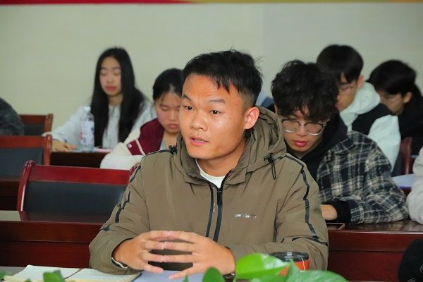 随后,来自各班级的学生代表依次发言。每位代表结合本班学生的学习和生活实际,反馈在学习中遇到的困难以及专业就业前景的疑惑,并从课堂纪律、课程设置、教学方式、学习习惯、班级管理等方面提出意见和建议。