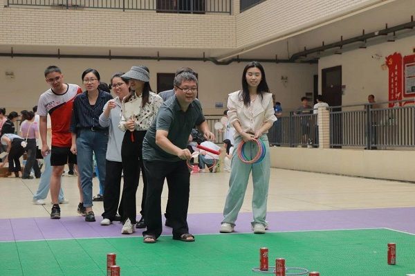 活动现场欢声笑语交织,氛围热烈,在漆扇手作活动中,将传统漆扇制作技艺与勤廉文化教育相结合,师生通过亲手制作漆扇的过程,传播勤勉廉洁的价值理念。在夹红豆活动中,古人认为红豆色赤如血,可镇煞驱毒,故在端午时节将红豆夹于香囊、布艺或粽馅中,既取“红豆祛病”之意,师生共同体验夹红豆,寓意驱邪避疫、祈福纳祥。活动还设置了打陀螺、抖空竹、飞镖、滚铁环、套圈等多种多样的活动,老师同学们沉浸其中,在亲身体验间,对传统文化有了更深刻的认知与全新感悟,端午文化的种子,也在这一场欢乐的互动里,于心田生根发芽、茁壮成长。
