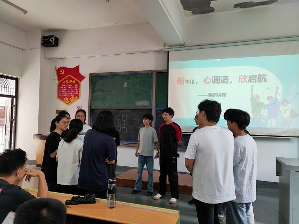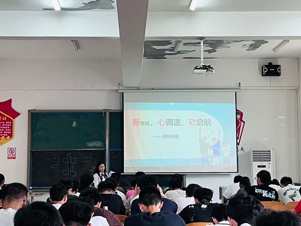 课堂上,薛老师以“新学期,心适应,欣启航”为主题,结合大学生心理发展特点与常见心理困惑,用生动案例和互动游戏展开讲解。她从“处理好与自己的关系”“处理好与他人的关系”“处理好与环境的关系”三个维度,剖析了新生入学阶段可能面临的心理挑战,如对新环境的陌生感、人际交往的不适感、学业压力的焦虑感等,并针对性地给出“情绪日记”“社交破冰小技巧”等实用策略。