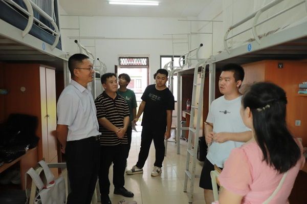 为切实了解2025级新生入学后的住宿环境与适应情况,帮助新生快速融入大学生活,9月6-7日下午,我院党委书记任才茂、院长杨松、党委副书记韦静月、副院长蒋琼明深入新生宿舍开展走访慰问活动,将学院的关怀与温暖送到每一位新生身边。学院全体新生班主任、辅导员及新生班级助理一同走访。
