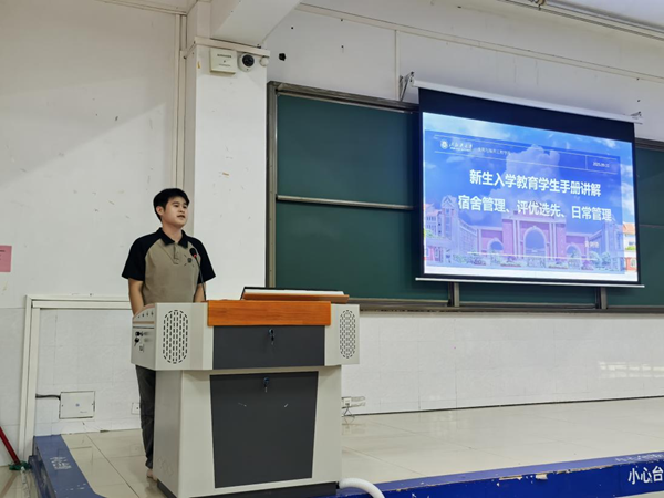 9月11日下午,多场专题讲解接力开展,为新生厘清各项校园管理规定。徐艳霞老师围绕综合素质测评、学生纪律处分、考试违规处理等重要文件,解读关键内容,强调规则意识对大学生成长的重要性,引导新生依规行事、诚信求学。薛舒敏老师聚焦学生资助与奖励体系,详细解读国家奖助学金、校级奖励评选标准及申请流程,系统介绍勤工助学岗位设置与管理要求,让新生全面了解校园资助帮扶政策,消除后顾之忧。黄剑锋老师结合《北部湾大学学生管理规定》,重点讲解宿舍管理规定、评优评先等内容,并就班集体建设提出建议,鼓励新生积极参与班级活动,共建团结向上的班集体。