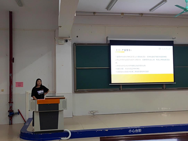 (学院党委副书记韦静月为新生讲授安全及廉洁教育课)
