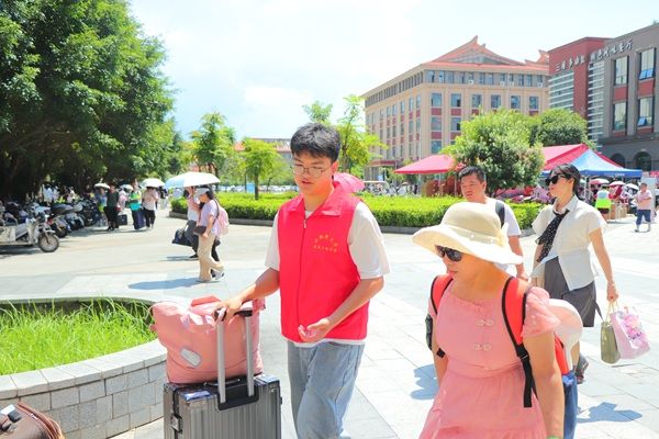 迎新活动当日,学院党委书记任才茂、院长杨松、副书记韦静月、副院长蒋琼明等领导亲临现场指导迎新工作,并与新生和家长亲切交谈,让初来乍到的同学们感受到了学院的温暖与关怀。在新生报到手续办理现场,新生班主任、辅导员、新生班助们等接待服务工作人员认真核验登记学生信息,耐心解答新生问题,指导学生完成报到手续。迎新志愿者们身着统一志愿服,以专业高效的新生报到接待服务,引导新生和家长到报到点进行报到,给新生及家长送上矿泉水和板凳,并帮助新生搬运行李,引导办理相关入住手续,热心协助新生顺利完成各项报到流程。