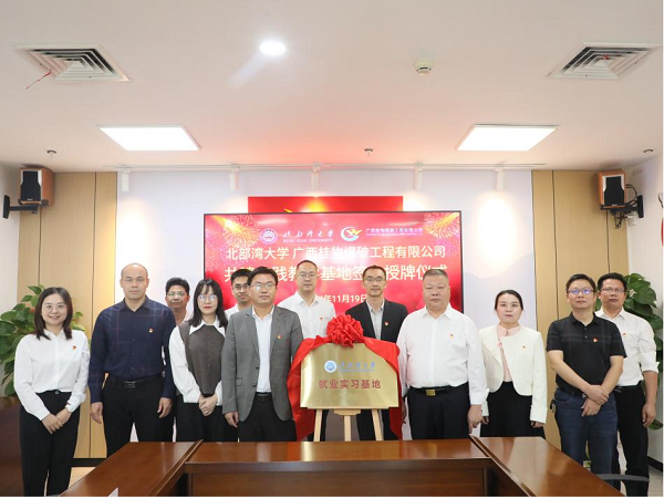 座谈会上,广西桂物民爆物品有限公司总经理吴香善对黄学仁书记一行到访表示热烈欢迎,并介绍了企业的基本概况、发展历程、业务范围、人才需求等情况。黄学仁书记向企业介绍了学院的专业设置、人才培养、教学科研等情况,希望能与企业进一步加强合作交流。双方在人才培养、实习实训、科研合作等方面进行了深入交流,并达成了合作意向。在双方的共同见证下,学院与广西桂物民爆物品有限公司签订了《共建实践教学基地协议》,并举行了“就业实习基地”揭牌仪式。