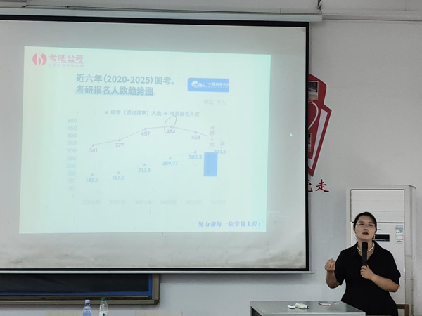 本次讲座特邀考吧教育资深专职讲师邓老师主讲。邓老师深耕公考培训多年,擅长数资模块与结构化面试教学,授课思路清晰、通俗易懂,能根据不同学员基础提供针对性指导,凭借丰富的经验深受考生认可。讲座内容干货满满,系统介绍学校各专业适配的2026年国考、省考及事业单位招录方向,详解三类公职岗位的待遇标准与招录政策;通过精准数据解读广西壮族自治区区考、选调生及事业单位各岗位报名情况,剖析不同招录系统的笔试考情特点;针对广西各城市职位竞争难度进行分级解析,传授科学选岗技巧;同时分享高效备考策略与实用学习方法,全方位为学子备考保驾护航。