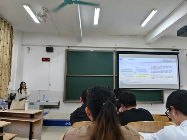 宣讲会上,中铁广州工程局集团第三工程有限公司招聘负责人李经理通过宣传手册、视频和PPT向同学们全方位的介绍了公司的整体情况以及招聘的岗位、人才需求的数量、薪资福利待遇、人才培养体系、企业文化等情况。宣讲结束后,企业现场收集同学们的简历并组织30余人进行了现场面试。