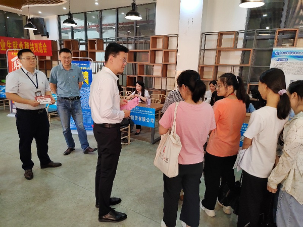 学院党委书记史忠丰(左三)与求职同学亲切交流