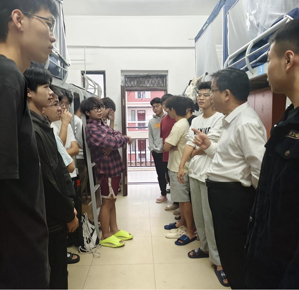 宿舍走访中,黄学仁书记、杨松院长深入学生宿舍,仔细查看宿舍环境与设施,关切询问学生的生活习惯、作息时间以及室友关系。在与学生的交流中,黄学仁书记和杨松院长对大家关心的宿舍文化建设、生活服务保障等问题一一作答,并叮嘱同学们要保持良好的宿舍卫生,加强自我管理与团队协作,营造和谐温馨的宿舍氛围。