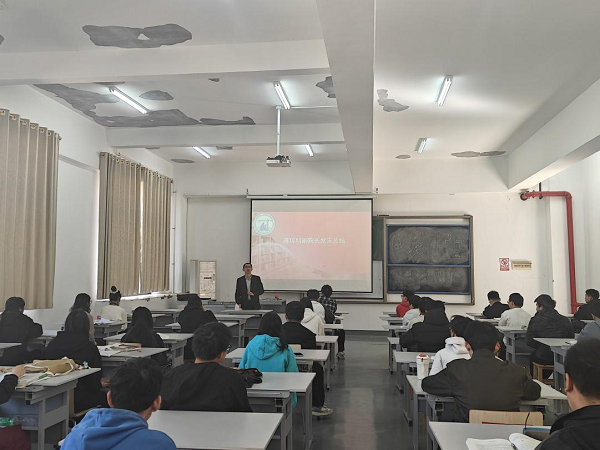 近日,建筑工程学院积极推动党政领导联系班级工作制度,学院党委书记黄学仁、院长杨松、党委副书记韦静月、副院长蒋琼明深入一线,通过参加班会、走访宿舍等形式,全面了解联系班级学生学习与生活状况,给予学生悉心关怀与精准指导。