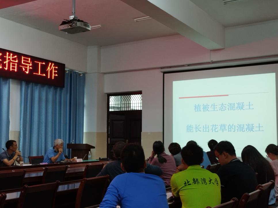 讲座中,汪峻峰教授首先介绍了自己的专业、背景和研究方向,分享了已经取得的重要研究成果;接着,应参会老师的兴趣选择,汪教授依次详细解释了几项研究课题,包括:海洋暴露试验站、喷射混凝土、低热大体积混凝土、生态护坡植生混凝土等。最后,在科研课题的选择和研究方面,汪教授给在座老师们提了几点科研建议,比如发挥区域特色的优势,做研究要坚持不懈、始终如一等。