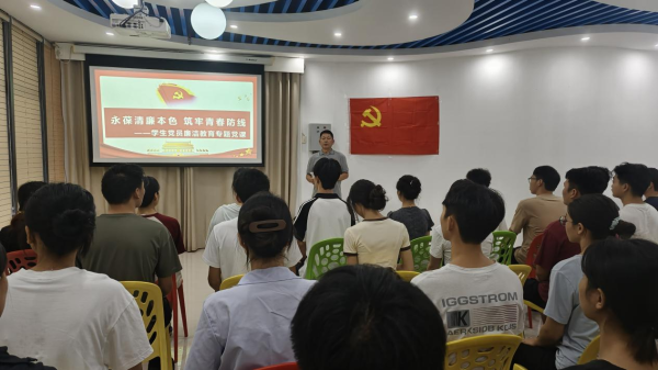 随后,任才茂书记以“永葆清廉本色,筑牢青春防线”为题,为在场全体党员讲授廉洁教育专题党课。以工程结构为例,告诫党员同学们混凝土里掺不得假,水平仪的基准不能斜,要如钢筋挺直脊梁,用清廉品格筑就人生丰碑。