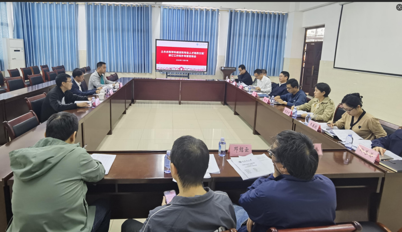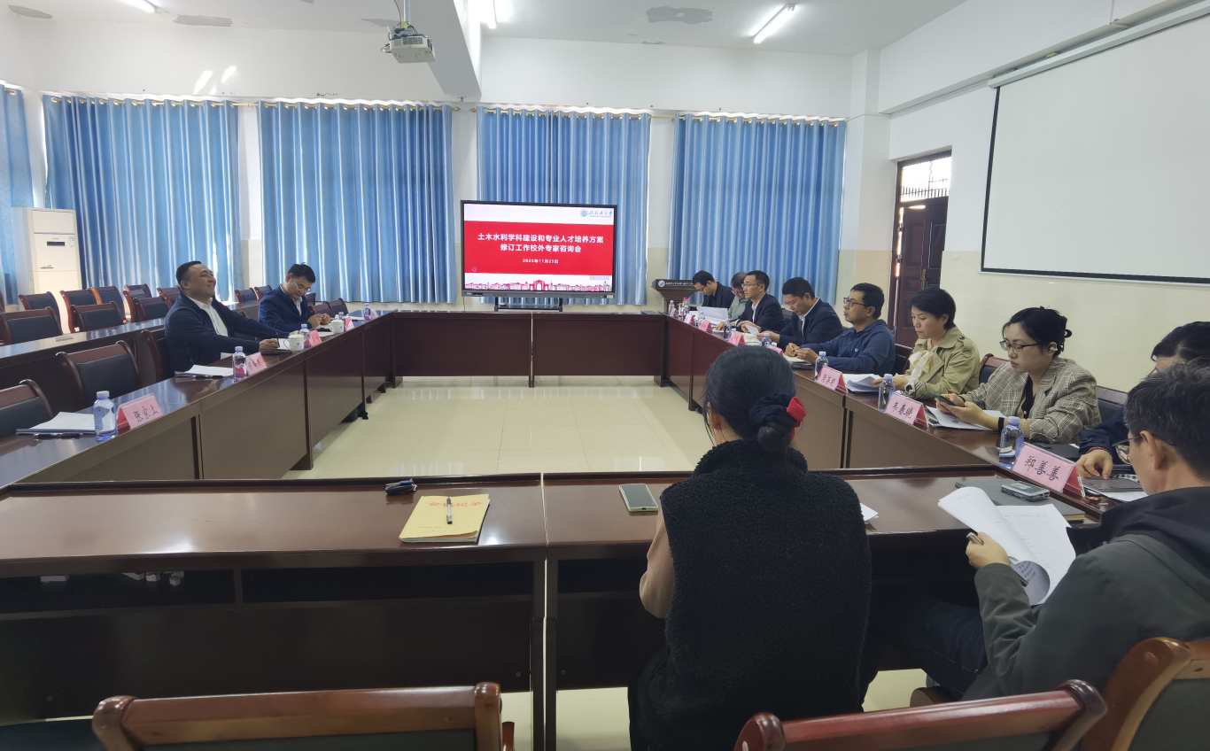 11月25日下午,北部湾大学水利与海岸工程学院在8B-533会议室召开土木水利学科建设与本科专业人才培养方案校外专家咨询会。会议邀请广西壮族自治区住房和城乡建设厅住房改革与发展处副处长黎浩、广西建工集团建筑工程总承包有限公司、总经理助理劳宇、钦州市水利局副局长、高级工程师陈梅杰,钦州市农业农村局农业农村科科长朱开宇、钦州市建筑工程质量检测中心高级工程师张家上等校外专家出席,学院全体领导班子、教学指导委员会成员及相关科室负责人、课程组负责人参与座谈。会议由学院院长杨松主持。
