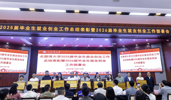 12月12日上午,学校在办公楼一楼报告厅召开2025届毕业生就业创业工作总结表彰暨2026届毕业生就业创业工作部署会。水利与海岸工程学院荣获“北部湾大学2025届毕业生就业创业工作先进集体”荣誉称号,学院工程造价和港口航道与海岸工程专业荣获“就业创业工作专业就业卓越奖”,学院韦静月、徐艳霞、黄剑锋、辛瑞雪四位老师荣获“就业创业工作先进个人”称号,与学院长期合作的中铁广州工程局集团第三工程有限公司获得北部湾大学2025届就业创业工作用人单位杰出贡献奖,学校领导为受表彰的单位和个人颁发了牌匾和荣誉证书。