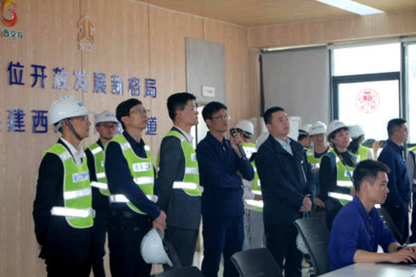 项目常务副经理杨茗钦向建筑工程学院教师介绍品控中心运行情况及技术亮点