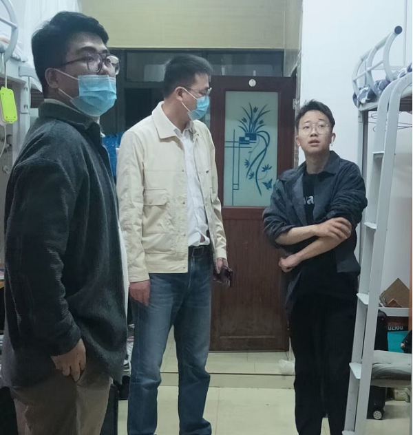 新学期伊始,为了解学生返校状态、提高学生安全意识,3月1日晚,建筑工程学院学工办主任刘海涛、辅导员徐艳霞、薛舒敏、陈励坤深入学生宿舍,面对面了解学生思想动态,宿舍用电安全及生活习惯。
