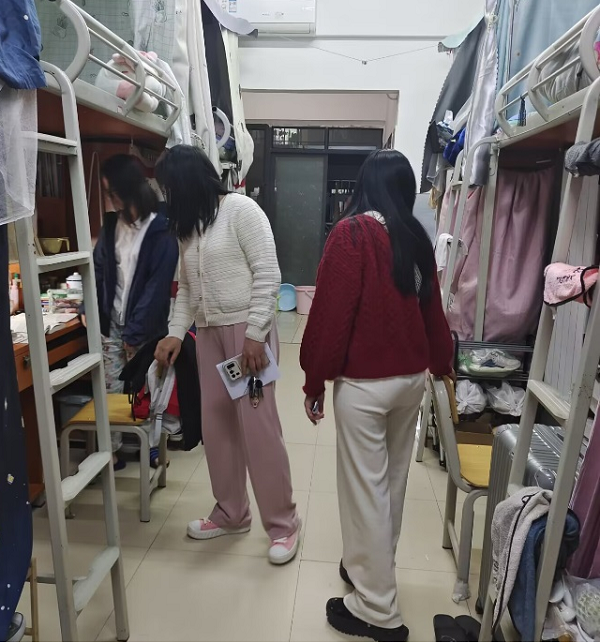 走访期间,各位老师与同学们细致交谈,询问同学们返校后的吃饭、住宿、复习情况、毕业设计进展等,叮嘱同学们要保持良好的个人卫生及宿舍卫生,养成良好的生活习惯,有任何困难及时反馈,多与班主任、辅导员沟通交流。每到一处,老师们都向同学提醒宿舍用电安全,不得在宿舍喝酒,校内校外注意言行举止,保持良好精神风貌,并着重强调春季为感冒多发期,在宿舍内勤洗手、常通风,聚集性场合佩戴口罩,避免剧烈运动等,做好自己身体健康的第一责任人。对卫生较好、氛围活跃的宿舍进行表扬,对存在问题的宿舍指明整改措施和鼓励关切。