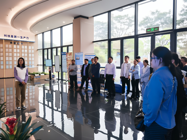 下午,学院一行前往南宁蓄能发电有限公司,实地参观南宁抽水蓄能电站,系统了解抽水蓄能电站的运行原理与工程结构。作为国家“十四五”重大工程,南宁抽水蓄能电站总投资约80亿元,是广西首座抽水蓄能电站,具备调峰、储能和新能源消纳等多重功能。电站通过上下水库协同运行,在用电低谷时储能、高峰时发电,实现清洁能源的高效转换与利用。调研中,教师们重点关注了电站在复杂地质条件下的工程建设技术及其智能化、绿色化施工方式等内容,进一步加深了对水利工程技术体系和国家能源战略的理解,为优化专业课程体系优化、凝练科研方向提供了重要参考。