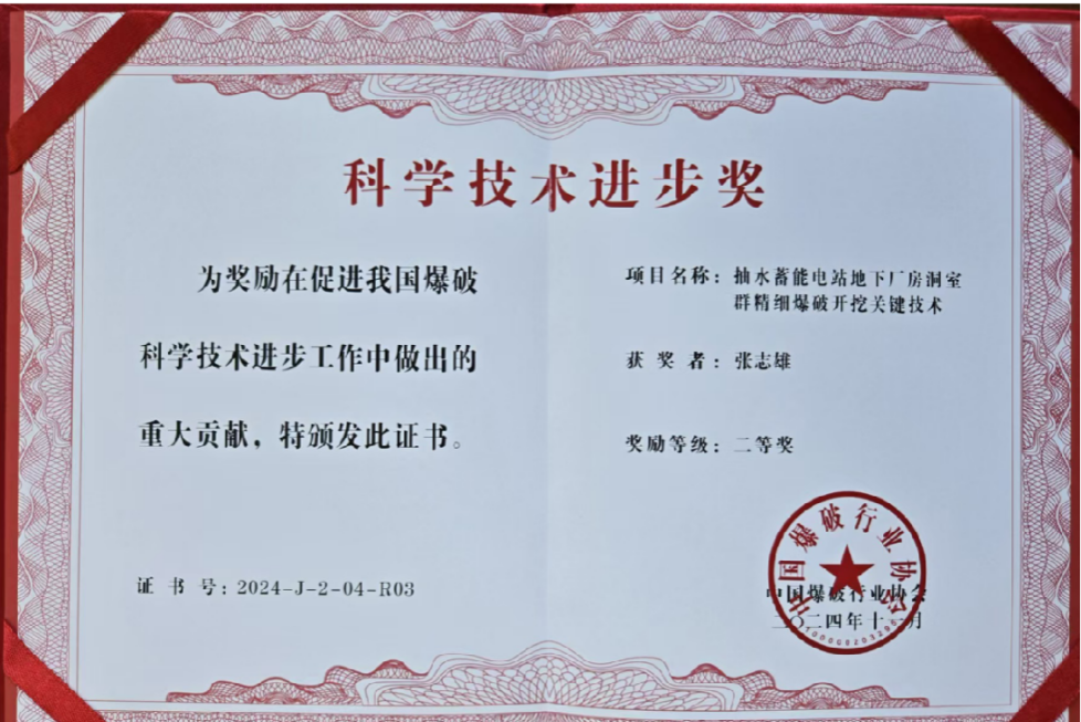 11月28日,在中国爆破行业协会第七届常务理事会第四次会议、中国爆破行业协会第七届理事会第三次会议暨中国爆破行业协会成立30周年大会上,举办了2024年度科学技术奖颁奖仪式。北部湾大学建筑工程学院张志雄团队承担的《抽水蓄能电站地下厂房洞室群精细爆破开挖关键技术》科研成果荣获中国爆破行业协会2024年度科学技术进步奖二等奖。