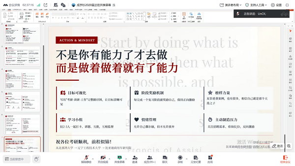 交流环节中,同学们围绕职业选择、备考准备、海外求职、创业筹备等问题积极提问,嘉宾逐一细致解答,线上互动氛围热烈。最后,各位校友送上成长寄语,鼓励在校生认清形势、提前规划、夯实能力、勇敢尝试,走出属于自己的成长之路。